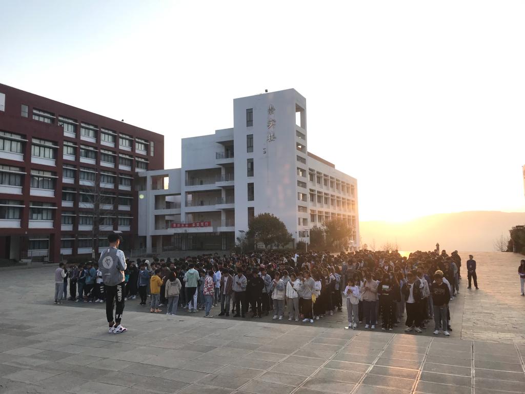 晨起正是读书时,书香为丝梦为裳。迎着清晨七点钟的太阳,20级各班同学在观山楼前排列整齐,他们个个精神抖擞,大声朗读着、背诵着,集体学而乐之,校园里回荡着同学们朗朗的读书声。
