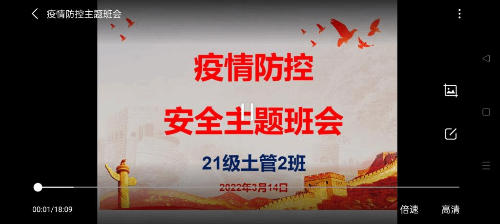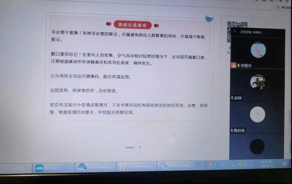 此次疫情防控主题班会的召开,有效增强了学院各班级学生对当前疫情形势的正确认识,明确了疫情防控期间的纪律要求。学生们纷纷表示,一定会积极配合学校学院防疫工作,认真做好个人防护,积极完成学习任务,争做科学防护的践行者、明辨是非的引领者、共克时艰的参与者。