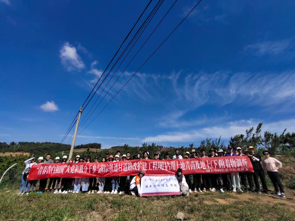 为深入学习贯彻习近平总书记在党史学习教育动员大会上的重要讲话精神,把习近平总书记在清华大学考察时重要讲话精神落到实处,国土空间信息学院本着把专业书写在大上的教育理念,坚持学习党史与实践相结合,于58日组织开展了“传承红色基因”系列教育活动之青春告白祖国活动。此次活动的主要内容是组织学生入党积极分子参与阳宗镇通村道路改扩建工程项目占用土地青苗及地上()附着物调查工作。