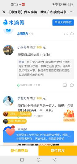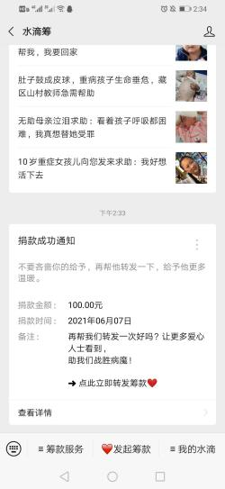 倡议发出后,我院师生纷纷伸出援助之手,慷慨解囊。学院各党支部、各班级积极组织捐款,师生们把捐款打到对应“水滴筹”的求助账户上,并通过微信QQ转发“水滴筹”的求助链接,让爱心继续传递。涓滴之水汇成海洋,颗颗爱心变希望,我院广大师生用赤诚之心为遇到困难的两位同学点亮了一盏希望之灯。