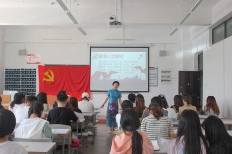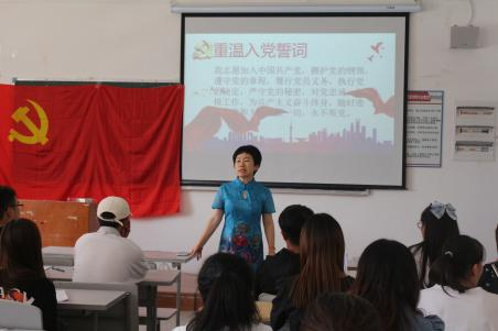 接着,高老师向即将奔赴新征程的毕业生党员表示祝贺。她讲到,同学们经过三年的努力成功通过党组织和学校的考验成为一名中国共产党员,加入了中国共产党就要做到“不忘初心、牢记使命”。既要能从各个方面严格要求自己,脚踏实地做事,又要时刻牢记党员的责任与使命,更要谨记母校教诲,敢于担当,主动作为。走向工作岗位后,一定要不怕苦不怕累,以健康的人格和正确的心态从容面对社会激烈的竞争与挑战,把奉献社会作为不懈追求的优良品德,为母校增光添彩。