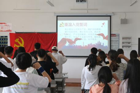首先,在高老师、徐老师的带领下,毕业生党员们面对鲜红的党旗,紧握右拳,进行庄严宣誓。他们句句铿锵有力,表达着为党奉献的决心和担当。