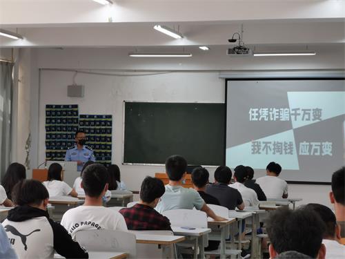 “人物+沟通工具+要求=诈骗”,这是张警官告诉同学们的辨别电信诈骗的公式,“人物”即无法准确确认其身份,“沟通工具”即电话、短信、网络等,“要求”即汇款和转账,用此公式辨别诈骗,便利了不少。在讲到常见的诈骗形式时,张警官结合近期发生的诈骗案件,用准确、通俗易懂的语言和真实鲜明的案例对如何防范网络诈骗、如何保护个人信息、如何辨别网络谣言等进行了讲解,同时还讲了网络购物、刷单、微信解封、助学金和奖学金诈骗等。