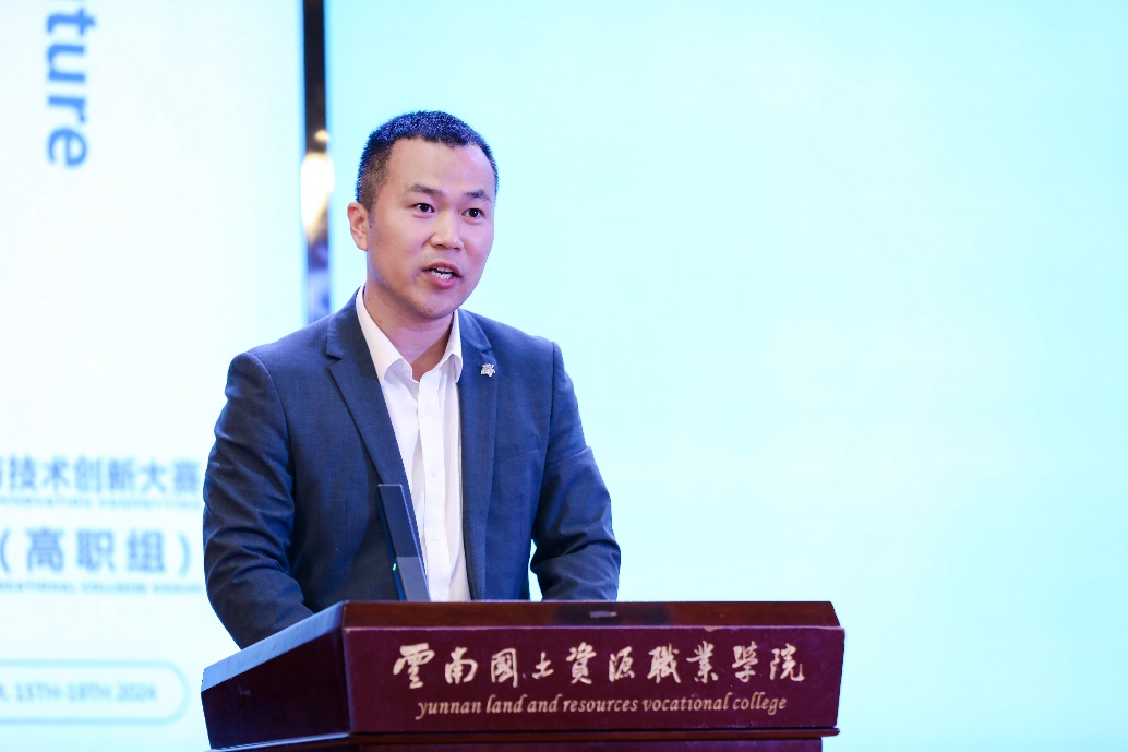 云南省教育厅职业教育与成人教育处副处长王勇致辞。他表示此次大赛是贯彻落实习近平总书记关于职业教育重要讲话精神的生动体现,是同学们展示学习成果,交流学习经验的重要机遇,是展示云南职业教育办学质量的重要窗口。今后,云南将继续积极响应、主动作为,加强中外职业教育交流与合作,不断推动职业教育向更高水平更深层次发展。