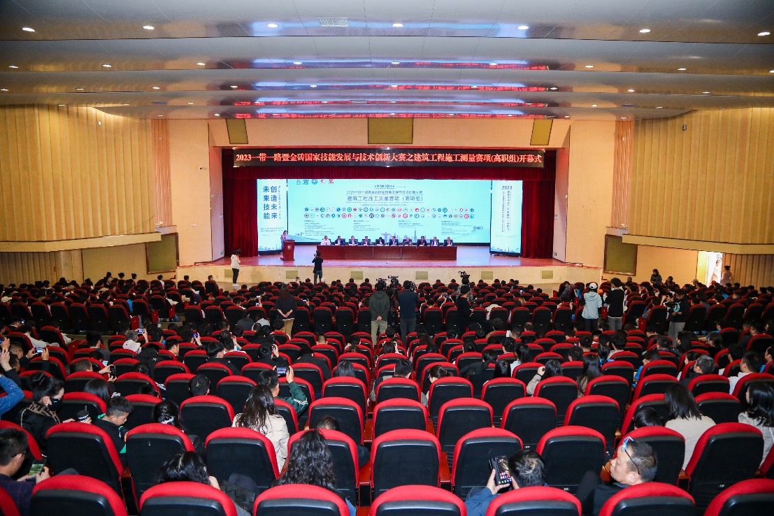 3月16日下午,2023一带一路暨金砖国家技能发展与技术创新大赛建筑工程施工测量赛项国内决赛(高职组)在我校隆重开幕。