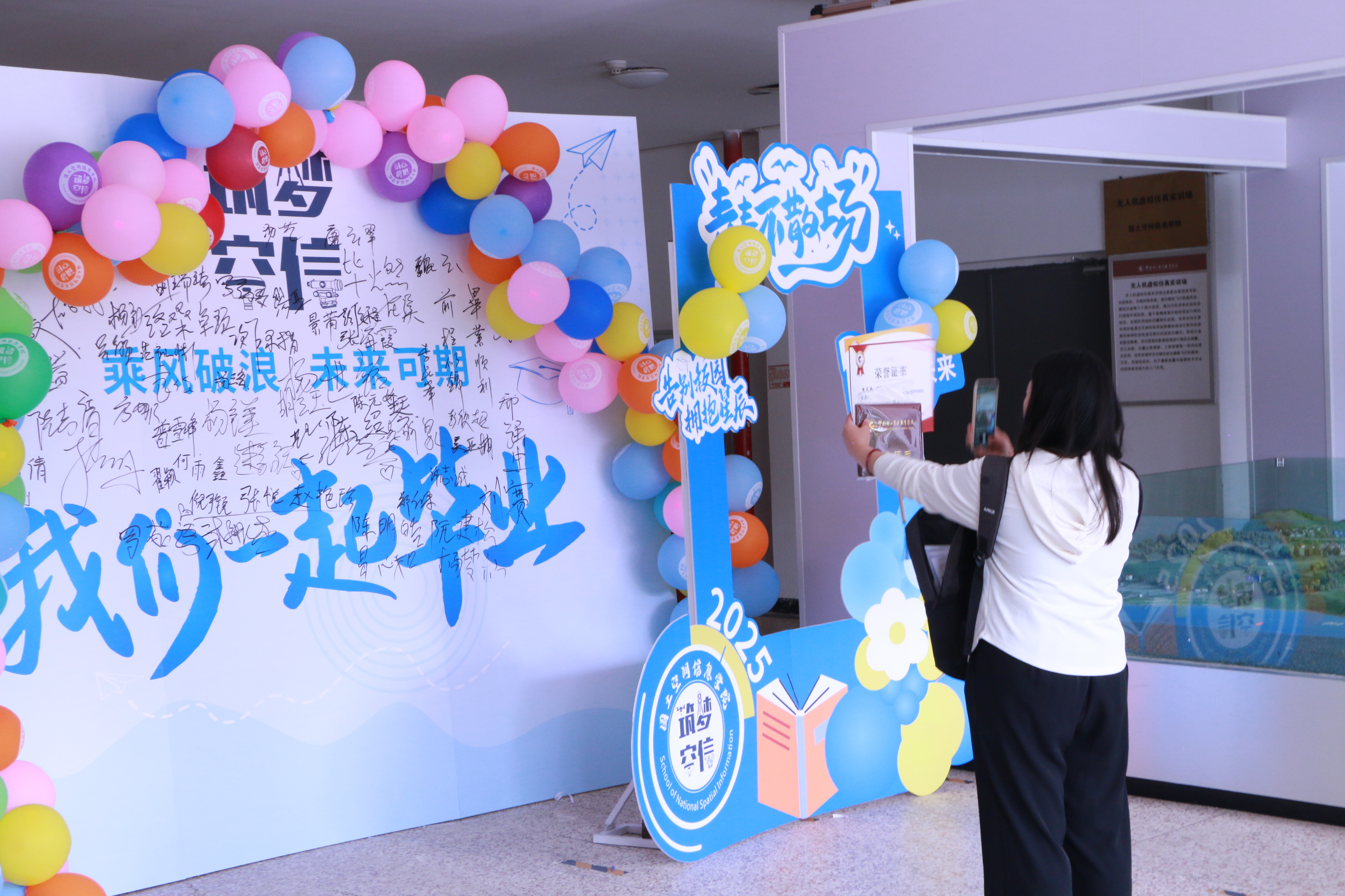 学院为毕业生打造了充满仪式感的打卡场地,毕业生纷至沓来打卡留念,和老师、同窗一并留下美好的毕业影像。
