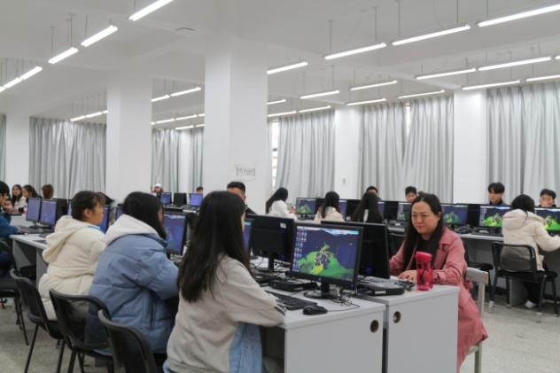 紧接着,竞赛正式开始,参赛选手们或凝神细思,或急敲键盘,他们心无旁骛,在电脑上争分夺秒却又有条不紊。在场的老师们密切关注选手们竞赛情况,耐心帮他们解决竞赛过程中遇到的问题。在选手们不断跳跃的键盘声中,竞赛慢慢临近尾声。选手们作答完毕后,现场负责老师逐一认真检查提交成果,确保提交成功,方能离开考场。待所有选手提交成果后,评委老师们将严格按照评分标准,遵循公平公正原则,对各成果进行打分。