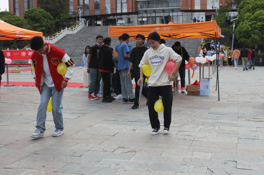 另外,还有考验耐力的“呼啦圈”、“步步为营”、“个人跳绳”,文字游戏“正话反说”,考验团队协作的“球球大作战”、“衣服接龙”、“桃花朵朵开”,极具挑战性的“我心飞翔”、“蒙眼大战”、“投壶”、“小球上筷”、“嗨歌比拼”、“大象踩气球”、“一站到底”等游戏。参与的同学顺利完成游戏即可获得兑奖券,集够一定数量的兑奖券还可兑换零食、生活用品、电子产品等。新颖有趣的游戏以及丰富的奖品让同学们乐此不疲地四处挑战,活动现场气氛热闹欢快。