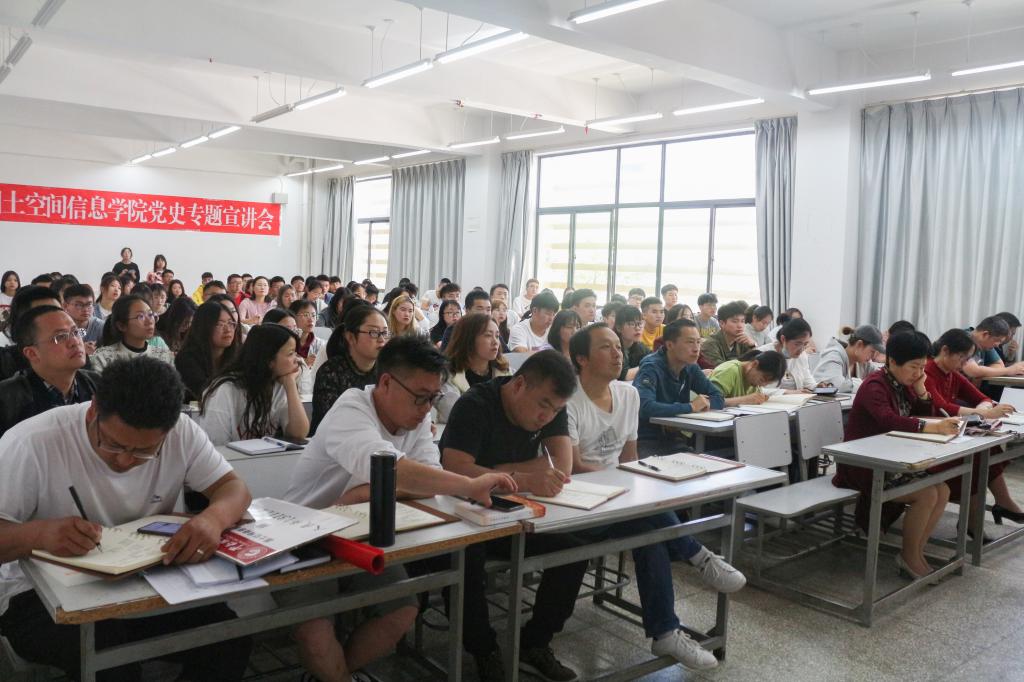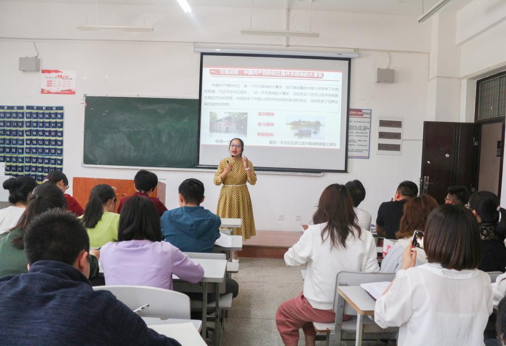 421日中午,马克思主义学院副院长张颖莅临我院,为我院全体教师、18级学生预备党员、19级入党积极分子以“学好党史,培根铸魂”为题进行专题宣讲,张老师以“红船启航”讲述了中国共产党创立的艰辛,并总结了“红船精神”的内涵即首创精神、奋斗精神和奉献精神。接着,她用“13”,“72”,“94”这三组数字引出了中国共产党从“站起来”到“富起来”再到“强起来”的发展历程。随后,她又结合典型事例讲述了“中国共产党为什么能”,让在场的老师同学们对党有了更深刻的认识和理解。最后,张老师结合我院专业课向我院全体教师介绍了“课程思政”是什么、为什么、怎么干,这使我院老师深受启发,进一步明确了今后针对所授课程开展“课程思政”的目标和方向。