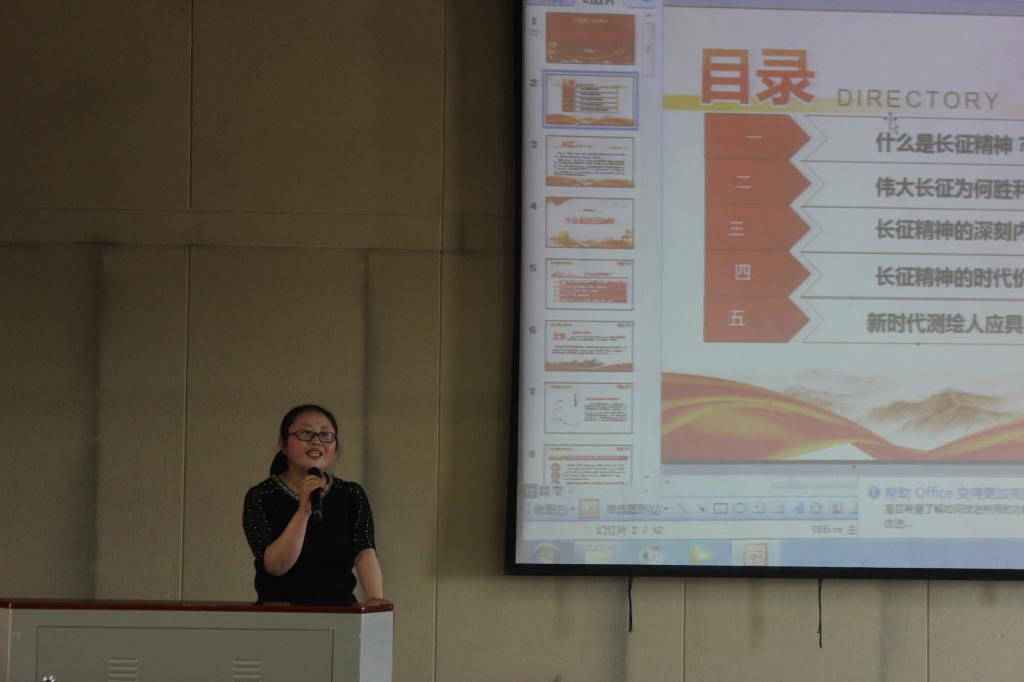 422日,我院针对19级学生进行了三场党史专题讲座,主讲人分别是申锦华、王军芳、袁锋三位老师。此次讲座的主题为“长征精神与测绘人”,将长征精神与我院测绘相关专业充分结合在一起,启发同学们思考测绘人的精神品质,引导他们更清晰地认知所学专业,进而做好人生职业规划。另外,讲座上,老师们还向同学们推荐了反映测绘人工作生活的文学影视作品,希望同学们能够继承和弘扬长征精神,做一个不怕苦、能吃苦、勇拼搏的测绘人。