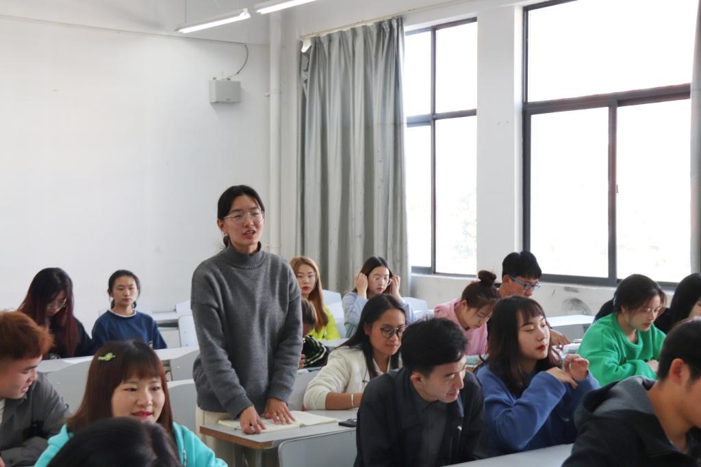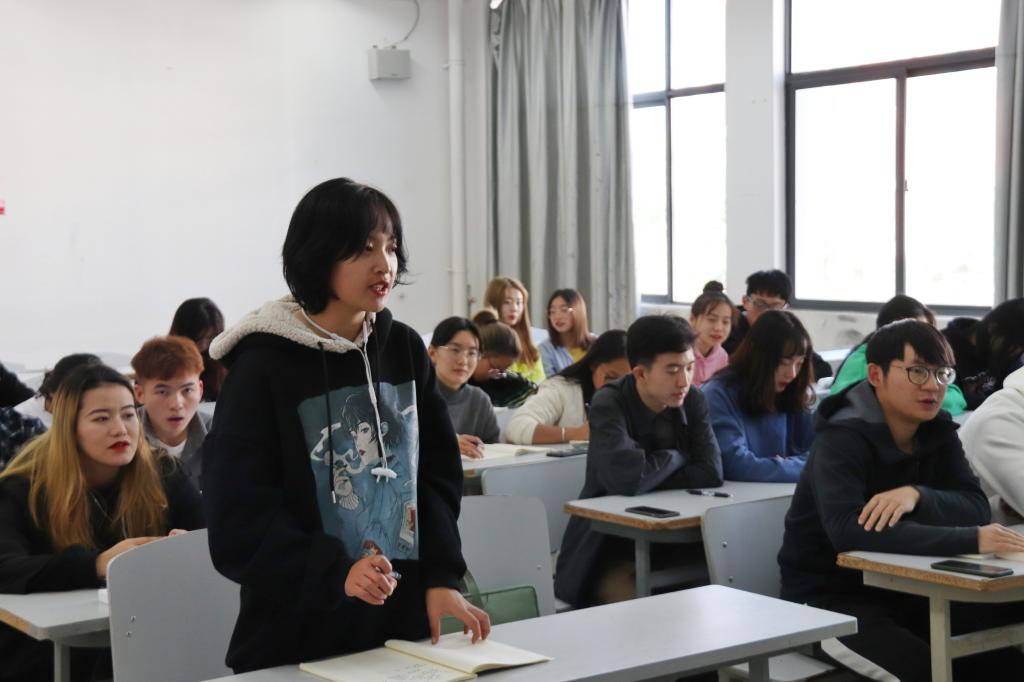 随后,高老师就疫情防控常态化下学生所面临的就业形势作补充发言。首先,她就疫情形势下在校学生所面临的就业困境做了详细的分析,鼓励同学们要全力以赴做目前年龄段应该做的事情,为自己搭建知识平台,在学好自身专业知识与技能的同时,也要注重自身其他方面的发展,提升个人综合素质;其次,身为学院学生干部,要有主动作为的担当精神,要“勇担当、乐于奉献”。