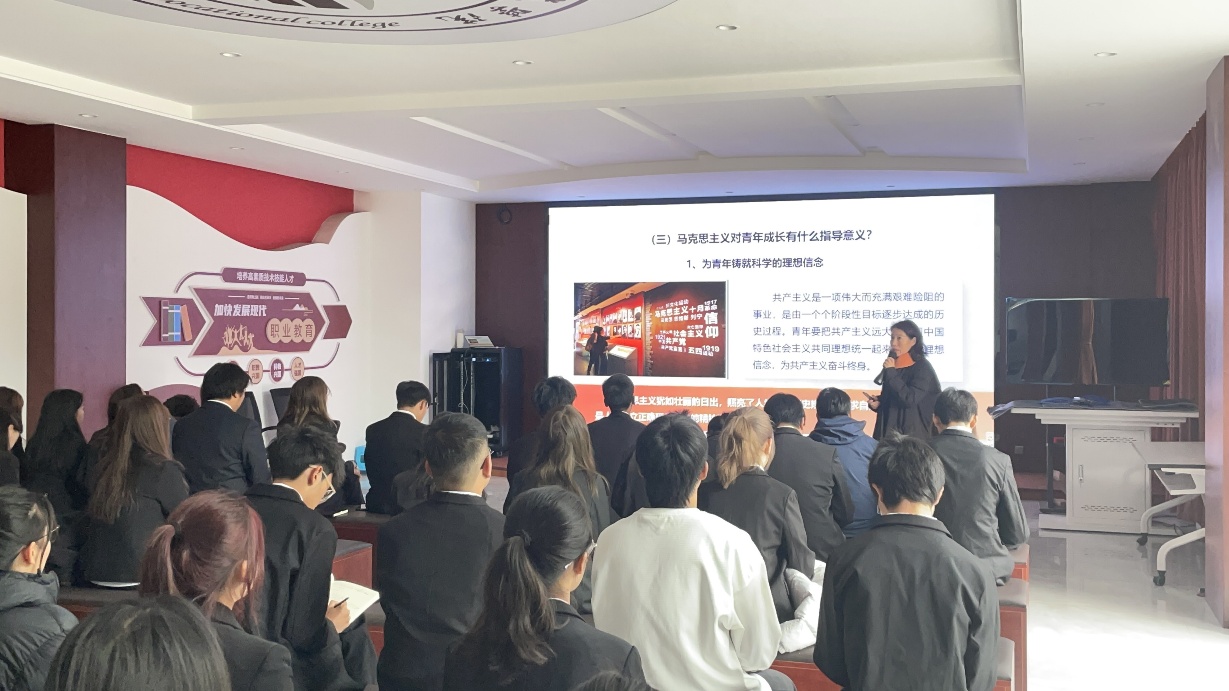 在“马克思主义的创立与发展”的授课中,张老师介绍了马克思、恩格斯作为马克思主义创始人的历史故事以及马克思主义创立的思想渊源,并详细讲解了马克思主义的三个基本组成部分,张老师深入浅出的讲解让同学们加深了对马克思主义的理解与记忆。