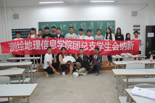 测绘地理信息学院学生会设有办公室、组织部、宣传部、文艺部、学安部、勤工部、监察部、体育部8个部门。纳新活动正式开始前,我院学生会干部做了周密的准备和广泛的宣传,鼓励新生们积极参与。