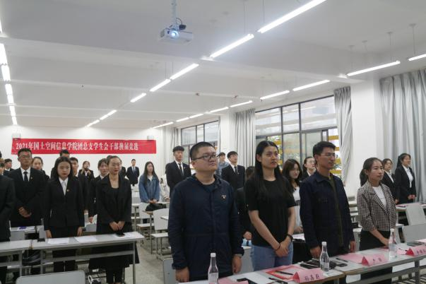 伴随着庄重严肃的《中国共青团团歌》,此次换届选举活动拉开了序幕。首先,学生会主席团、各部门部长对一年的工作进行了认真全面的总结与汇报,并鼓励参加竞选的同学们要多一些自信,充分展现自身风采。