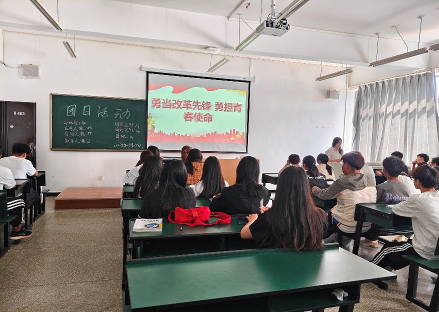 贾淑涵带领同学们回顾了党的光辉历程,学习了党的二十届三中全会精神,强调作为新时代青年要勇担时代重任,为实现中华民族伟大复兴的中国梦贡献青春力量。