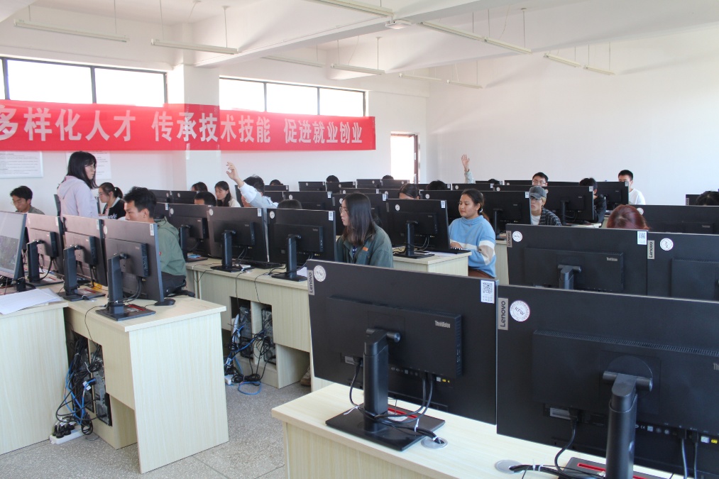 竞赛过程中,参赛学生聚精会神地看着电脑屏幕,游刃有余地操作鼠标和键盘,充分地运用自己所学的专业知识,努力完成竞赛作品,赛场气氛紧张而有序。监考老师们也始终坚守在自己的岗位上,及时解决参赛学生考试过程中遇到的技术问题,确保竞赛顺利进行。