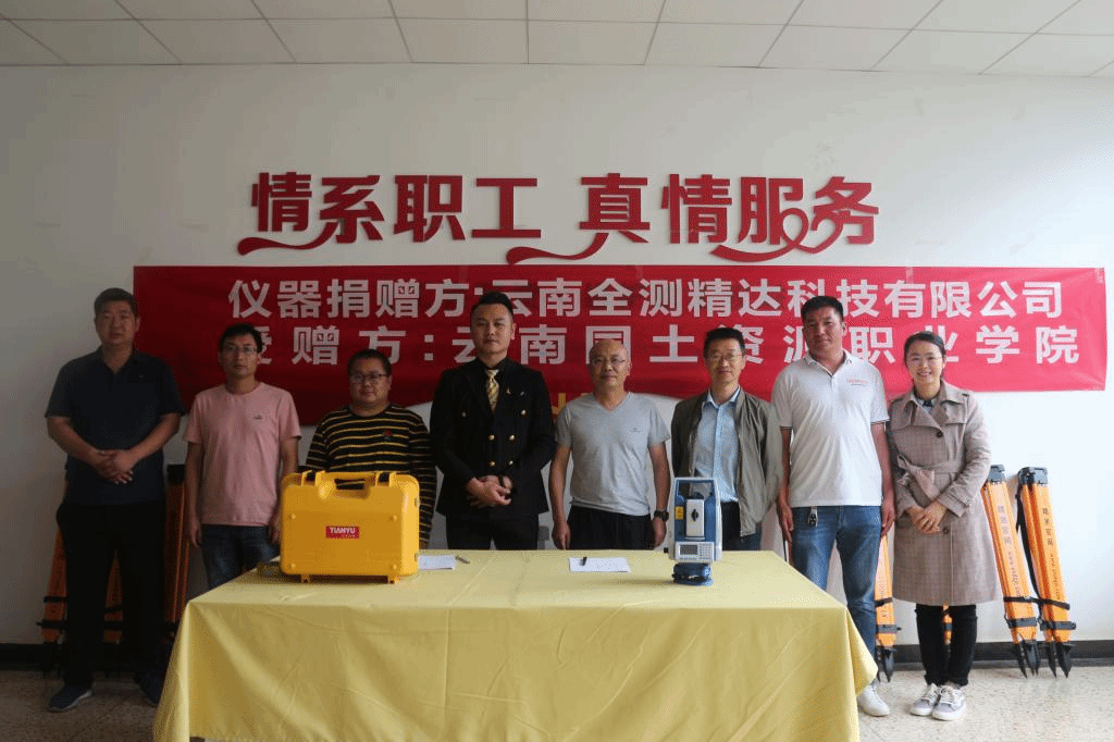 最后,张洪院长与赵财全董事长分别代表校企双方签订校企合作捐赠协议并进行了全站仪、脚架的交接。