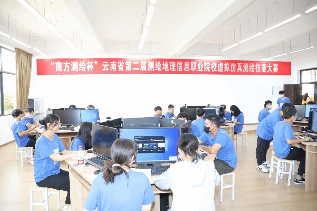为进一步推进全省职业院校扩宽实践教育,提升测绘技能竞赛科学化、规范化、专业化、智能化、信息化水平,培养符合国家战略和经济社会发展需要的高素质技术技能人才,2022年9月18日,“南方测绘杯”云南省第二届测绘地理信息职业院校虚拟仿真测绘技能大赛在我校阳宗海校区举办。此次比赛由云南省职业技术教育学会、云南省测绘职业教育教学指导委员会、云南现代学徒制工作专家指导委员会联合主办,云南国土资源职业学院承办,广州南方测绘科技股份有限公司昆明分公司协办。