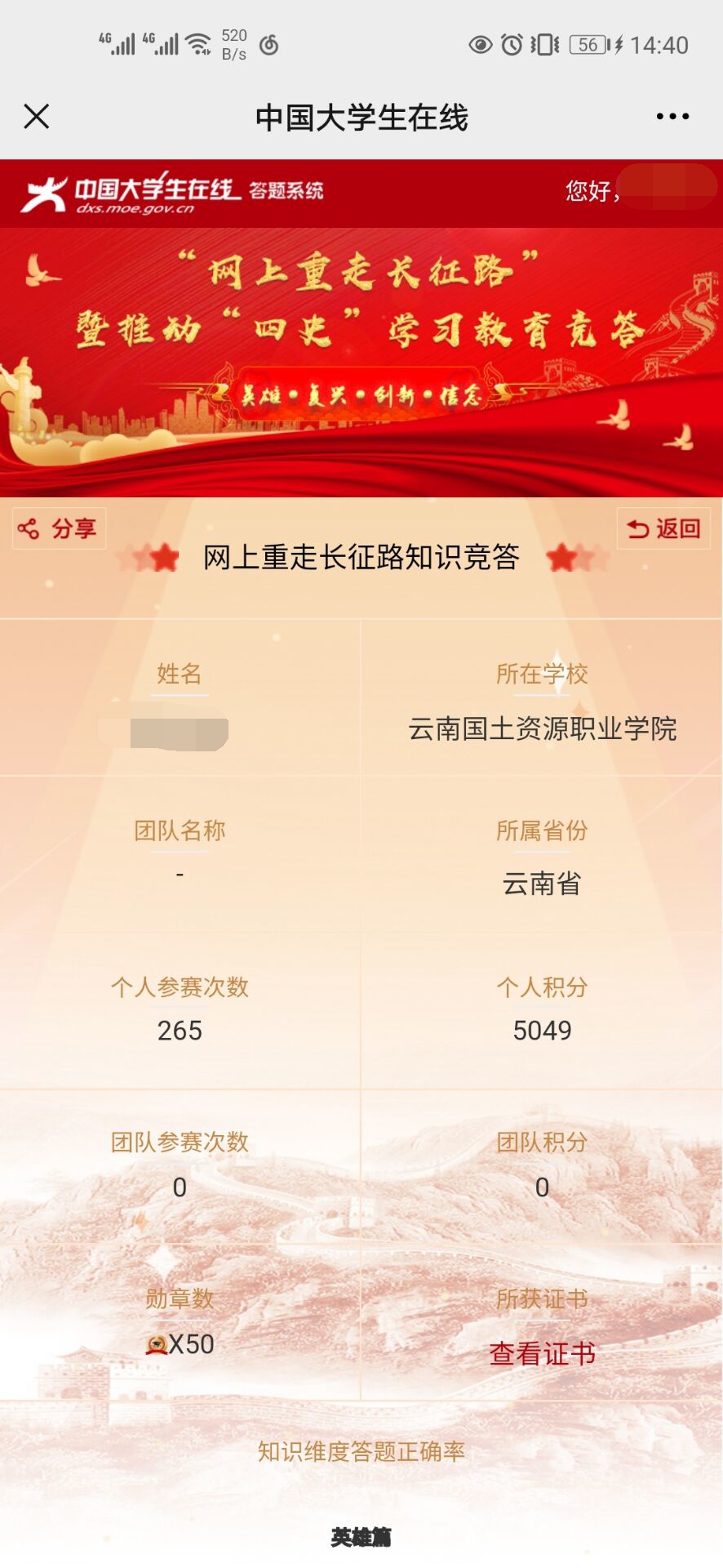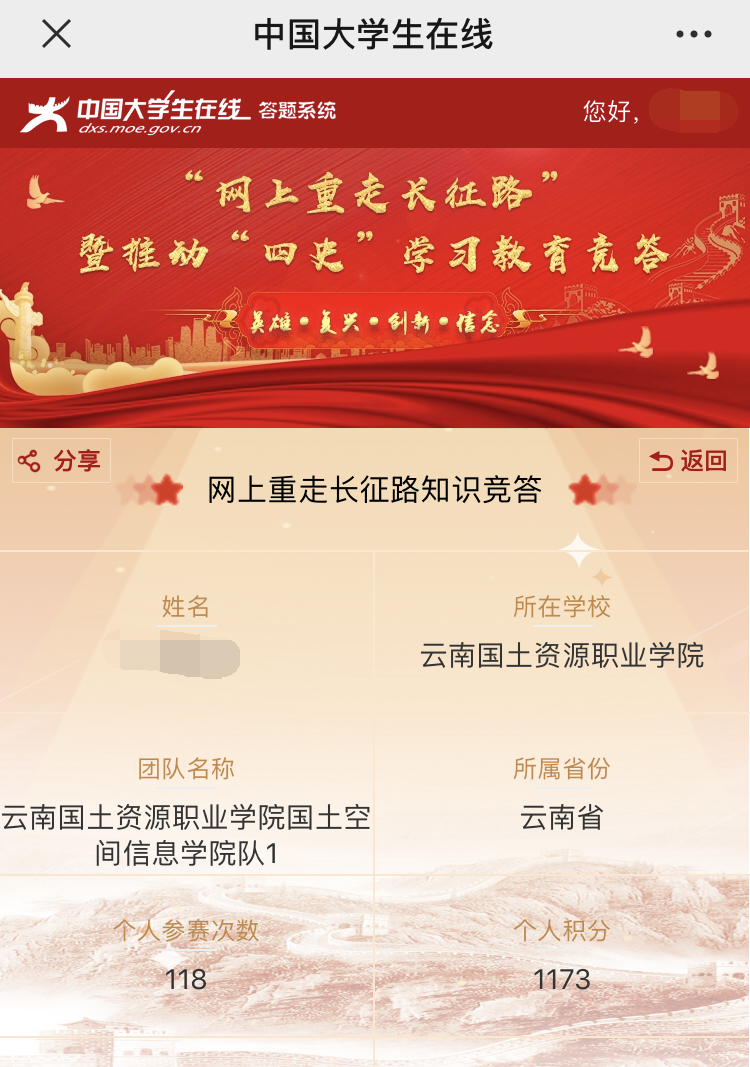 为深入贯彻落实《中共云南省委教育工委办公室关于组织参加“庆祝中国共产党成立100周年—学百年党史▪悟思想伟力▪铸奋斗精神”党史知识问答互动活动的通知》精神,引导学生知史爱党、知史爱国,促进学生形成正确的历史观、世界观、人生观、价值观,2021年5月初,玩弄丰满妇ⅩXXX人妻对“网上重走长征路”暨“四史”学习教育线上学习竞答活动进行了统一部署,用好微阵地,第一时间将学习任务和竞答要求传达给每一位师生。