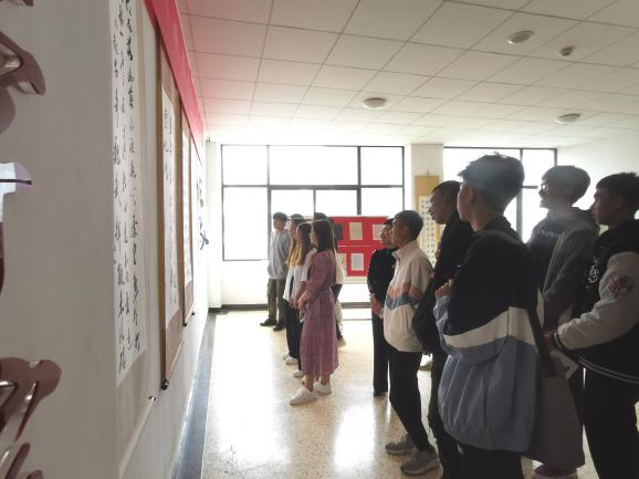 作品一经展出就吸引了很多师生驻足欣赏,大家站在一幅幅优秀的书画作品面前,共同领略其中风采,师生们在感受美、接受美的同时,了解党的百年辉煌历程。