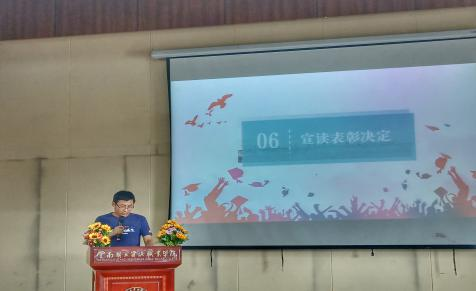 学院副院长沈映政老师宣读了省级、校级优秀毕业生,省级三好学生,院级毕业之星的表彰决定文件。在热烈的掌声中,出席典礼的领导及嘉宾依次为获奖的毕业生颁发荣誉证书。