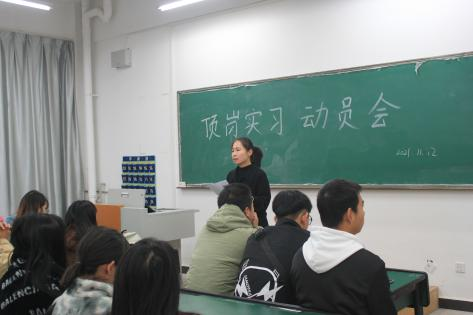 明晰内容,做足准备。动员会上,蒋兴义、张凌云、魏贵东、张宏品、费丽娜五位老师结合具体专业向即将走向实习岗位的同学们介绍了实习环节中的注意事项,并明确了实习时间、实习协议签订、蘑菇钉绑定及打卡、毕业论文设计、实习安全等相关要求。老师们对同学们提了几点希望与要求,一要积极转变角色、调整心态,主动适应顶岗实习;二是在实习岗位上要“有个性”,但不能“任性”,要有竞争意识、团队意识和法律意识;三要加强纪律观念,服从学院和实习企业的双重管理;四要善于把专业理论学习运用到实践当中,不断提升专业技能和综合素质;五要尽早对自己的发展做出规划,为就业打好基础、做足准备。