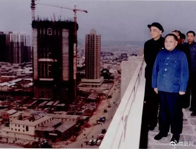 1984年1月24日,邓小平在深圳国商大厦楼顶俯瞰建设中的深圳全貌。