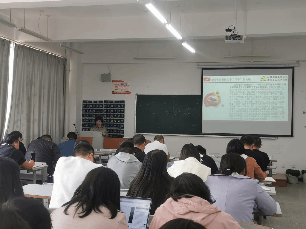 接着,高书记就党员教师如何贯彻好、落实好习近平总书记的重要论述这一问题进行了重点而详细的讲授。高书记讲到,一是要始终铸牢忠诚之魂,持之以恒锤炼政治品格。要做到相信党、追随党、维护党、珍惜党,在本职岗位上履职尽责,为共产主义奋斗终身,随时准备为党和人民牺牲一切,永不叛党。二是要始终砥砺奋斗之志,持之以恒务实担当作为。要做到可靠、忠诚、坦荡、无私,尽心尽职做好每一项工作,眼中有“活”干,勇于担当责任。三是要始终恪守为民之责,持之以恒增进群众福祉。要心里装着群众,眼里看着群众,服务为着群众,以为人民服务为宗旨,将党史学习教育的成果切实转化为为群众办实事的实际行动。四是要始终保持公私之别,持之以恒防止损公肥私。要在行为底线上公私分明,从教准则上先公后私,精神境界上公而忘私,在任何时候都必须把党的利益、国家利益、民族利益、师生利益放在价值序列第一位。五是要始终保持清廉之本,持之以恒做到奉公律己。要慎想、慎思、慎微、慎终、慎交,党员要始终怀有敬畏意识,不触党纪“高压线”、不踏国法“雷区”、不越做人“底线”。高书记结合学校党员干部,尤其是管理岗人员工作中有可能存在的风险进行提醒。